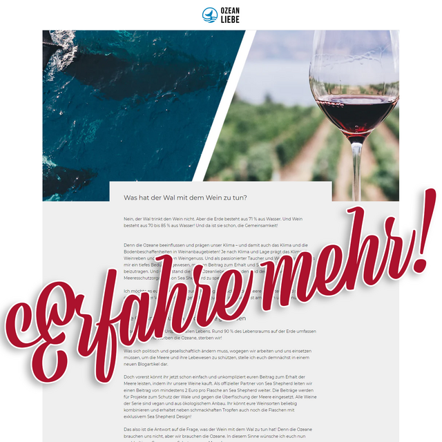 FIRST OF ALL: Ozeanliebe.com ist nicht Ozeanliebe.org :-) Die Namensgleichheit ist wirklich Zufall. Ich habe den Wein Shop Ozeanliebe.org im Herbst 2022 entdeckt und war sofort begeistert! Das ist echt eine super Idee. Thomas Menthe hat zusammen mit seiner Frau den Wein Shop Ozeanliebe gegründet und der Erlös wird an die Meeresschutz Organisation Sea Shepherd gespendet. Was wir gemeinsam haben: Die Liebe zum Meer und den Wunsch, etwas verändern zu wollen. Genauer gesagt, die derzeitige Entwicklung in Sachen Klimakrise und Artensterben zu verhindern oder besser noch umzukehren. Ozeanliebe.org ist zertifizierter Partner von Sea Shepherd und leistet erfolgreich einen tollen Beitrag zur Rettung unserer Ozeane.