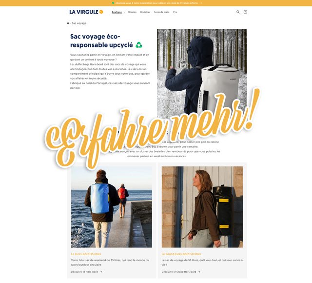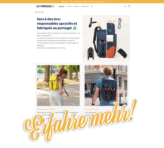 La Virgule agiert hier sehr vorbildlich, denn sie stellen Taschen und Rucksäcke aus gebrauchten Materialien her. Zusätzlich unterstützt La Virgule die Meeresschutzorganisation Sea Shepherd in deren Aktivitäten gegen die weltweite Überfischung. 20% des Umsatzes von La Virgule werden an die NGO gespendet. Eine weitere wunderbare Zusammenarbeit gibt es mit ZAG aus Chamonix-Mont-Blanc, einem französichen Hersteller für Ski Equipment. Seit Dezember 2022 gibt es den weltweit ersten upgecycelten Skitourenrucksack.